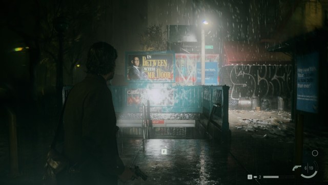 Caldera Street Station is found during the second chapter playing as Alan within Alan Wake 2. To get into it, you first need to turn on the light behind what should be its entrance. To do so, look around until you see a long alleyway with a light at the end of it. Head down and complete this section, then make your way back to where Caldera Street Station should be to find a now-turned-on lamp post. Activate it using your Angel Lamp, then head down to the station.
