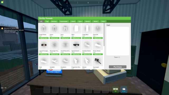 Once inside, you can purchase different types of clothing items using credit. Here is everything currently available at the store. This includes sunglasses, tops, hats, shoes, shorts, and more.