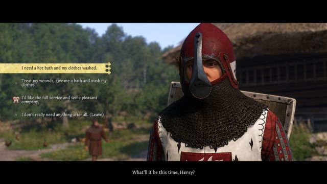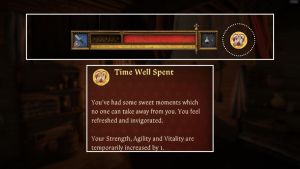 If you opt for the most expensive service, you’ll hear some suggestive audio (implied romance) as some time passes and gain the “Time Well Spent” buff. This lasts for quite a while and gives Henry an additional point for Strength, Agility, and Vitality.