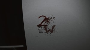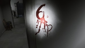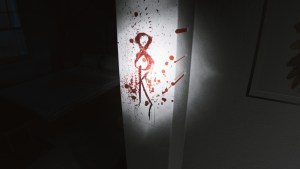 Next, head back upstairs into the bedroom. You’ll get a cutscene with bloody footprints. Follow the footprints down the stairs to the entry way. Do not go ahead of the ghost girl, she’ll knock you out if you touch her. Instead, follow the footprints patiently.