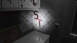 Now, you may notice that the bathroom light is flashing. Head towards the bathroom and turn off the light. Doing so will reveal the first clue to the password.