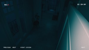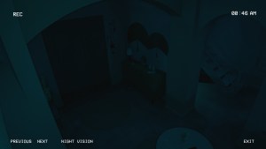 Once she puts a bloody handprint on the light, turn off the light and access the camera. Look at the entry way in night vision and you’ll get your next clue.