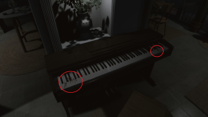 - Bloody handprint on the piano keys. Be sure to look at both!