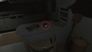 Head back up to the bedroom, going close to the bed. You’ll get another cutscene. Head downstairs. Look at the kitchen with the computer. You may need to change perspectives. Once you see the flashing lights and the handprint on the kitchen light switch, leave the computer.
