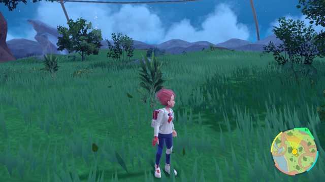 You’ll enter a meadow enclosed by rock walls. Here, you’ll also notice that it’s quite breezy, with the grass swaying leaves spinning in the wind. Get close to the middle of the meadow, where you’ll see the odd protruding plant just behind my trainer.