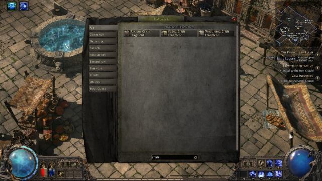 To go back to the Burning Monolith, you can select the little red skull icon in the endgame map screen to instantly switch the Burning Monolith. Bring one of each Crisis Fragment and go to the Burning Monolith. You can buy the remaining pieces in the Currency Exchange market if you don’t have the complete Crisis Fragment set.