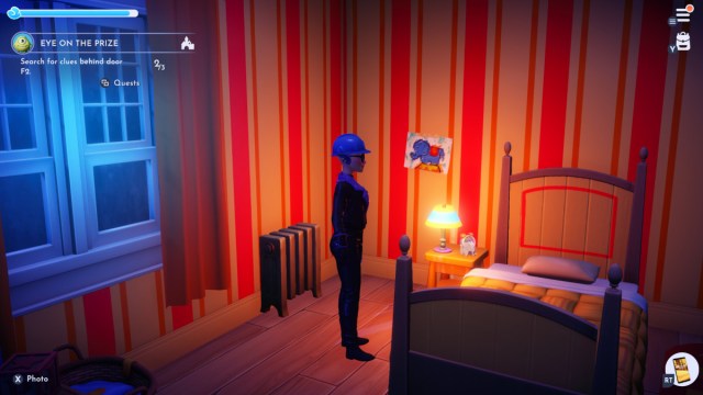 When you first enter the room, you’ll need to find and interact with three children’s drawings. You’ll find the first photo near the child’s bed, above the lamp, which will require the press of the interact button to continue.