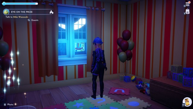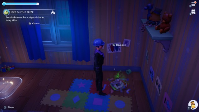 You’ll need a physical item to bring back to Mike Wazowski, and it’s not his favorite Coffee. Make your way around the room smashing the piles of stinky clothes on the floor until you find the item that you need, and head out of the door to complete this portion of the Eye on the Prize quest.