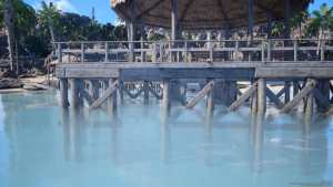 Our next chest will require us to follow the pier into the sea. Follow the pier until you reach the floating gazebo with the frond roof. In this gazebo, you’ll find the second chest. Inside, you’ll find a Ruby. Rubies are technically one of the rarest materials for item transmutation, and they’re a key component in crafting earrings, from your standard to your Magical. And earrings are great because they’ll increase a character’s MP and magic power.