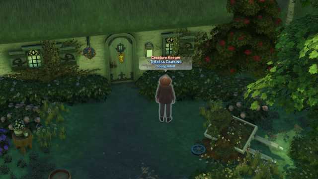 The Creature Keeper is located in Cottage Living’s Henford-On-Bagley world in the Bramblewood neighborhood. When visiting this neighborhood, travel to the Isle of Volpe Park lot, zoom out, and look for a small cottage to find the Creature Keeper outside tending to their gardens.