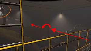 3. After descending the ladder, head along the metal walkway until you see a thick metal support beam. Walk across this.