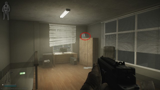 Once you go inside, be extremely quick, as other PMCs can camp the exit. Once inside the building, head to the staircase on the right side. Go up, and you’ll see a cabinet next to a table and a safe. Sanitar’s Surgery Kit is in one of the folders on top of the cabinet.