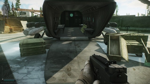Once you are near the helicopter, go to the back and plant the MS2000 marker inside the helicopter. You can also place the marker on the steel flooring beside the crates. However, it is safer to place it inside as you will be safe from any gunshots while defending the objective. If you get stuck in the bunker, you will be a sitting duck as you are open from the mountainside, warehouse rooftops, and basically every single direction going out of the bunker. So, if things get dire, just plant the marker, wait for the objective timer, and run away.