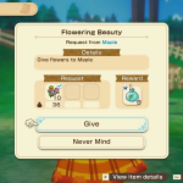 Maple’s Flowering Beauty request requires 10 flowers. However, if you pick up Mint, Chamomile, and other seasonal flowering plants that grow around Zephyr Town, it won’t count. That’s the main reason it is confusing: when you hover over the details, it still says “Any Flowers.”
