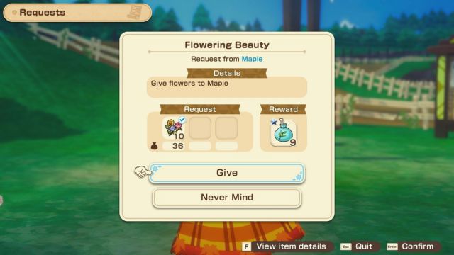 However, don’t feel too rushed to finish Maple’s request. It’s not like it’s a request that opens up a stall in the bazaar, like with Kat’s escape chickens, or even unlocking a Windmill like Isaac’s lost item request.
