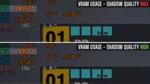 So, if you have a GPU with 10 GB VRAM, try using High (4 GB) instead of High (10 GB). This will lower the texture VRAM cost, so you have more room to increase other settings. Similarly, Shadow Quality is very demanding and eats up VRAM when going from High to Max. It’s why we recommend anything but the highest value.