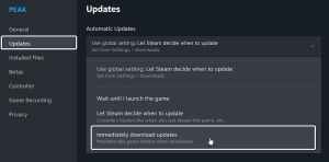 - In the Updates tab, select “Immediately download updates” under Automatic Updates