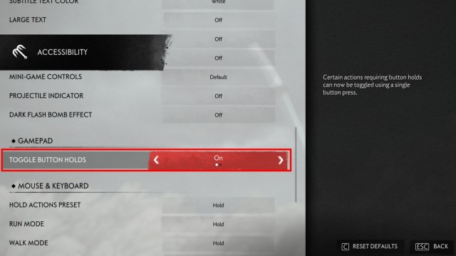 The most common solution, as reported by the players, is to toggle the button hold option from the settings. In the Options menu, go to Accessibility and look for Toggle Button Holds under Gamepad. Switch it to ON and initiate the standoff again. Now, you will no longer need to hold the heavy attack button and just tap the button when the enemy attacks.