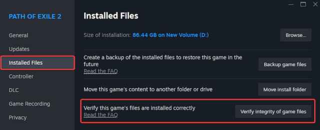 Path of Exile 2 is a massive release on PC and takes up nearly 87 GB. It’s also being constantly patched, so there’s a chance that the game files aren’t in order on your end, which is leading to hard crashes. Thankfully, both the Steam and POE clients allow you to verify game files.
