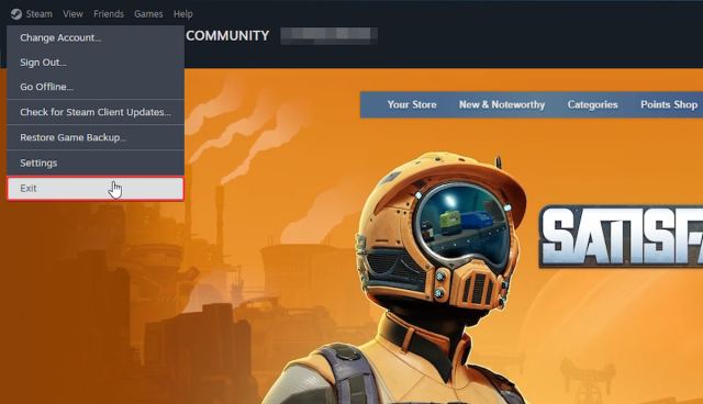 • Simply restart the Steam client by clicking Exit either in the client itself or the taskbar.