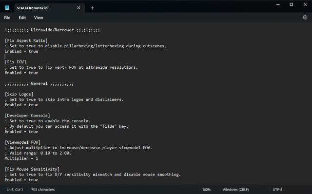 To disable any of the STALKER2Tweak features, simply change the value of ‘Enabled’ to false for the specific parameter. We highly recommend leaving everything set to true, as all these changes are a net improvement.