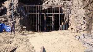When the Death Claws are dead, continue forward until you hit a crossroad. Again, you’ll encounter two Sandhog Pigs. Once they’re dead, turn right to find a Poison Materia at the dead end. Then, continue along the main path.
