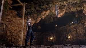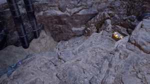 With the Drake dead, continue forward, and you’ll reach a dead end. Look up, and you’ll see the Cactuar on a wheel you must grapple across. You’ll need to make five grapple jumps before you can finally leap onto a yellow-marked ladder.