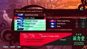 You can craft Ultimate Weapons at Mayoido Antiques as soon as you get your hands on the base Ore, but the most important material is the Heart Item. Each weapon uses a Heart Item from a late-game Persona, so you need to fuse these Personas and level up enough before crafting your perfect weapons.