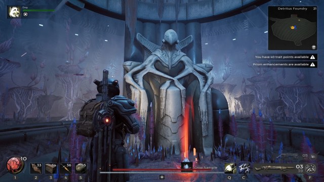 To get the Crop Sample, head to the Detritus Foundry. Near the end of this dungeon, just before you face the N’Erudian Reaper boss, you’ll encounter a section where the Crop Sample can be found, along with two out of four potential locations where it can be used.