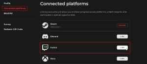 • Next, open the Connected Platforms tab on the Embark website and click on the LINK button next to Twitch.
