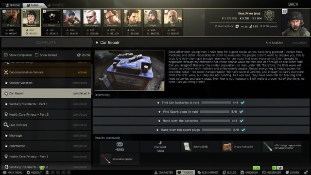 You’ll need four Car Batteries marked “found in raid” for the Car Repair quest from the Therapist (after the Pharmacist task). Besides the Car Repair quest, you may also need Car Batteries to upgrade your hideout. Since patch 0.16, we need items that have the “found in raid” tag when upgrading our hideout, meaning we have to find more Car Batteries every wipe.