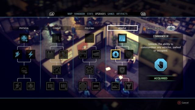 To get into any vehicle in The Precinct, you need to unlock the “Commandeer” skill. This allows you to walk towards any vehicle in the game with or without a driver and commandeer it.
