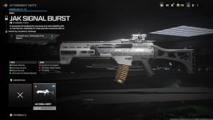 The JAK Signal Burst is a conversion kit attachment that was introduced to Call of Duty: Modern Warfare 3 during Season 1. The Aftermarket part will change the full-auto Holger 556 assault rifle into a four-burst shot, making it more accurate and viable for close-quarters combat.