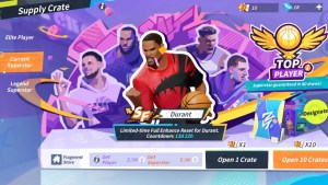 In the “Current Superstar” banner, look for the “Designate” button above the “Open 10 Crates” button. Tap the button and choose Kevin Durant. While you may still get other players, you’ll surely get Kevin Durant as your superstar while opening supply crates.