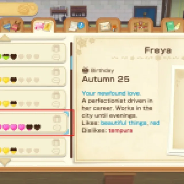 You’ll hear a sort of chime when it locks after talking to them, giving them gifts, or going to an event with them, which are the three main ways to develop your relationship with characters in the game.