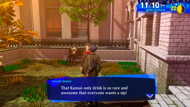 Don’t forget to bring the drinks back from your trip as you won’t have another chance of getting them. If you miss buying the drinks, the request becomes permanently impossible to complete by default as the student will never offer you the Oden Juice no matter what you do. You’ll only be able to complete it (and get that Aigis outfit) on a new game file later.