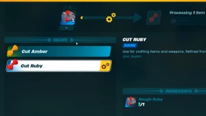 Select the recipe for Cut Ruby and add the desired amount of Rough Rubies. It will automatically craft Cut Rubies for you after the slicing process is over.