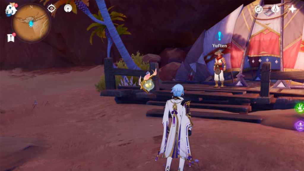 Yuften will ask you to search for their missing cargo, and after finding some suspiciously well-positioned hints, you’ll be ambushed by some Eremites claiming they were sent by Jeht to silence you. After making quick work of them, return to the camp and get the next task.