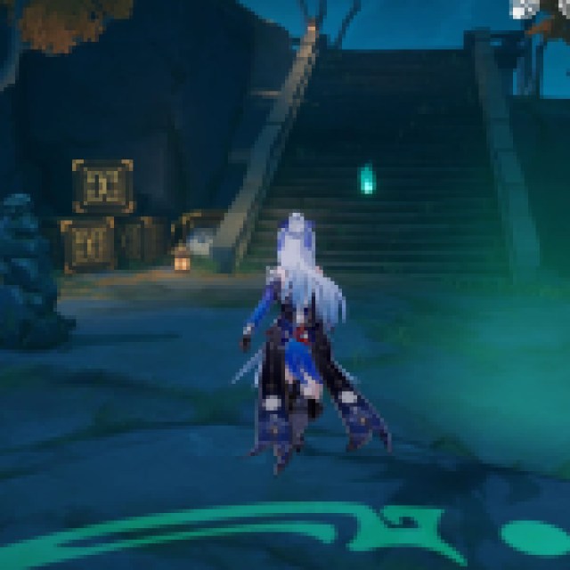 The first encounter will trigger after taking the stone elevator for the first time after completing the Sojourners’ Ghastly Reverie Trailblaze Continuation mission (Guinaifen and Huohuo’s first quest). Speak with the Little Ghost here and hold to its gift in your inventory.