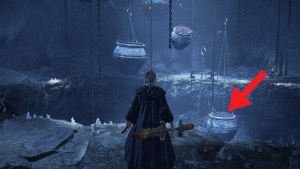 Go right and then take a sharp left. Keep going straight to get out of the maze and enter the final room. If you keep going straight and step on the hanging pot, it will take you to the Demi-Human Swordmaster Onze boss fight. But, that is not where you will get the Greatjar Helmet. Instead, turn back and look for another pot hanging below the platform. Step on it and it will take you to the level above. Jump on the pots and go straight from the stairway.