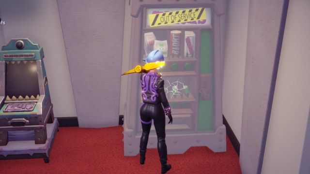 The first part of this puzzle is finding exactly where the Green Soda machine is hiding. Thankfully, since you’ve already unlocked the Monster Costume, you’ll be pretty familiar with the entrance to the Laugh Floor. In the main entrance area, you’ll want to make your way into the Reception Office where you’ll find the Green Soda Machine. The hard part is, however, finding out how to get one of them out of the machine, since it doesn’t give you much of a prompt. Like most electronics, a solid wack should get things working as expected once again.
