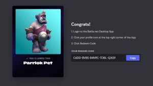 Follow the steps and copy the reward code. Paste the reward code in the Redeem Code window in your Battle.net Desktop App. Follow the steps and claim the pet.