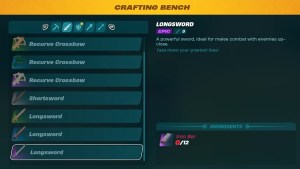 The Epic Longsword can be crafted with 12 Iron Bars at the Epic Crafting Table. The sword cannot be crafted until players can access the Epic version of the Crafting Table.