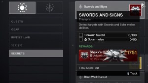 The Witcher emblem, also known as the Never Lost, Always Found emblem, can be acquired in Destiny 2 by completing the Swords and Signs triumph. This triumph is found as one of the Season of the Wish triumphs, located within the Secrets category. To complete this triumph, you’ll need to defeat 100 targets with a sword and 50 targets with Solar melee.