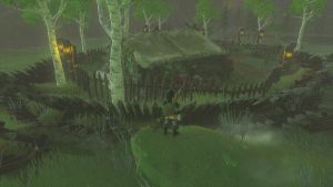 Once there, you’ll find that there’s a pretty fortified camp in the shadow of Mount Hylia. To get past the spikes without climbing the nearby mountain is to use the small hill near the back of the camp to glide over. Once you’re in the yard, get ready for the last fight. There’s even a cooking pot in the front if you need to slap together some elixirs or dishes.