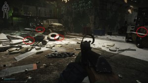 Next, you go to the med tents and loot the Technical Supply Crate. Go down and loot the other Technical Supply Crate. Run to the stairs and go to the 3rd office dorms. On the first floor, there’s a possible Toolbox spawn on top of the barrels. Next, you can go straight to the cabin near the forklifts for three possible Toolbox spawns.