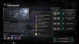 | Cloned Plasmids x100 | Specialized Serum Culture x150 | Centromere Mixture x200 | Vespers Hunting Dog Code – drops from Void Vessel Hard (container reward that requires a Decryption Key). |