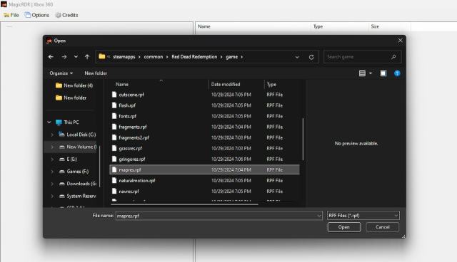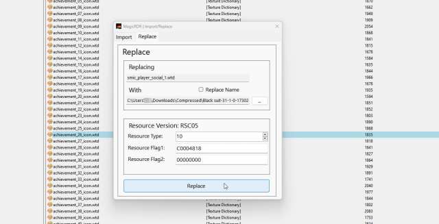 • Simply drag the smic_player_social_1.wtd file from the mod folder into MagicRDR, and you’ll be able to replace the specific part of mapres.rpf with the modded entry.