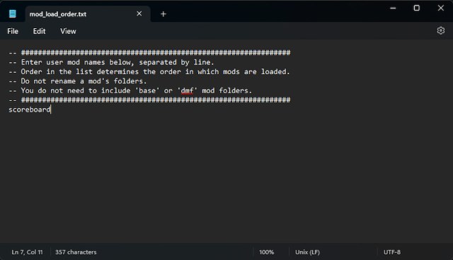 • Next, open the “mod_load_order.txt” file using a text editor like Notepad or Notepad++