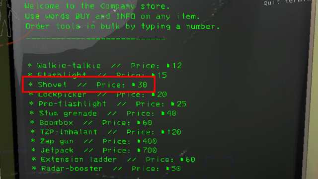 You can buy a shovel in Lethal Company through your ship’s terminal store for 30 scrap. To enter the shop, type store into the terminal to view its listings, then enter shovel and confirm. Once you pick up your shovel, you can carry it onto different moons and use it to deal with enemies, like the Snare Flea.